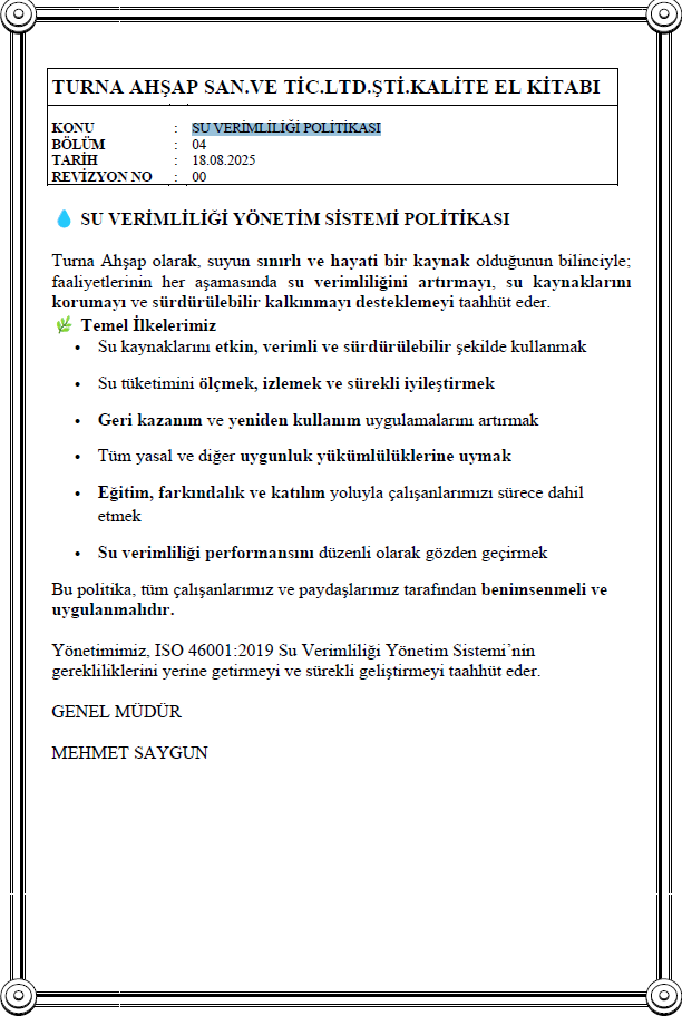 SU VERİMLİLİĞİ POLİTİKASI